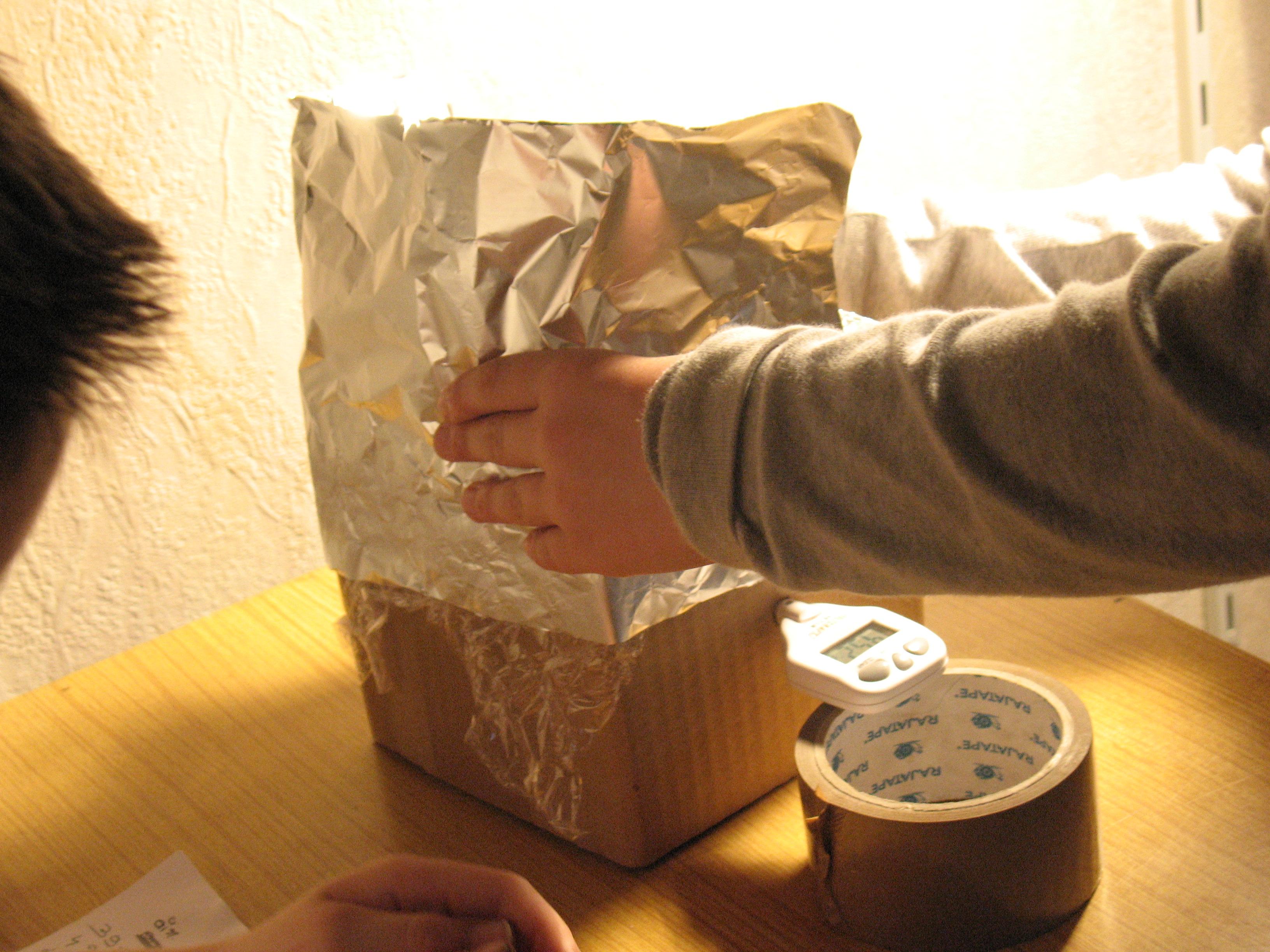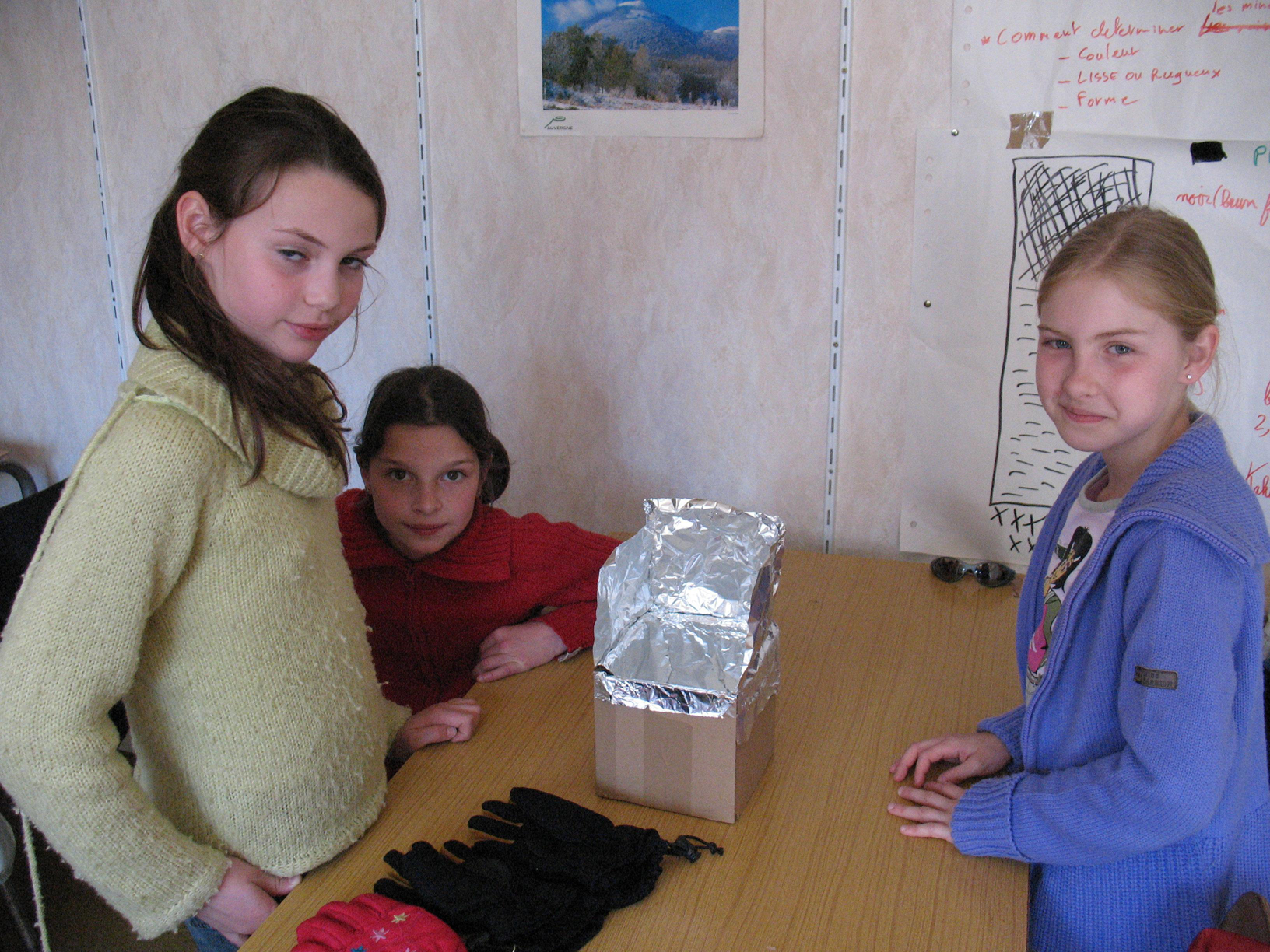 On a utilisé de l’aluminium et des vitres. Les boites avec de l’aluminium collé à l’intérieur semblaient garder la chaleur. Par contre, avec de l’aluminium sur l’extérieur cela semble se refroidir plus vite. La vitre permettait aussi de conserver la chaleur. Par ailleurs, on a mis de l’aluminium au-dessus de la boite pour réfléchir la lumière.