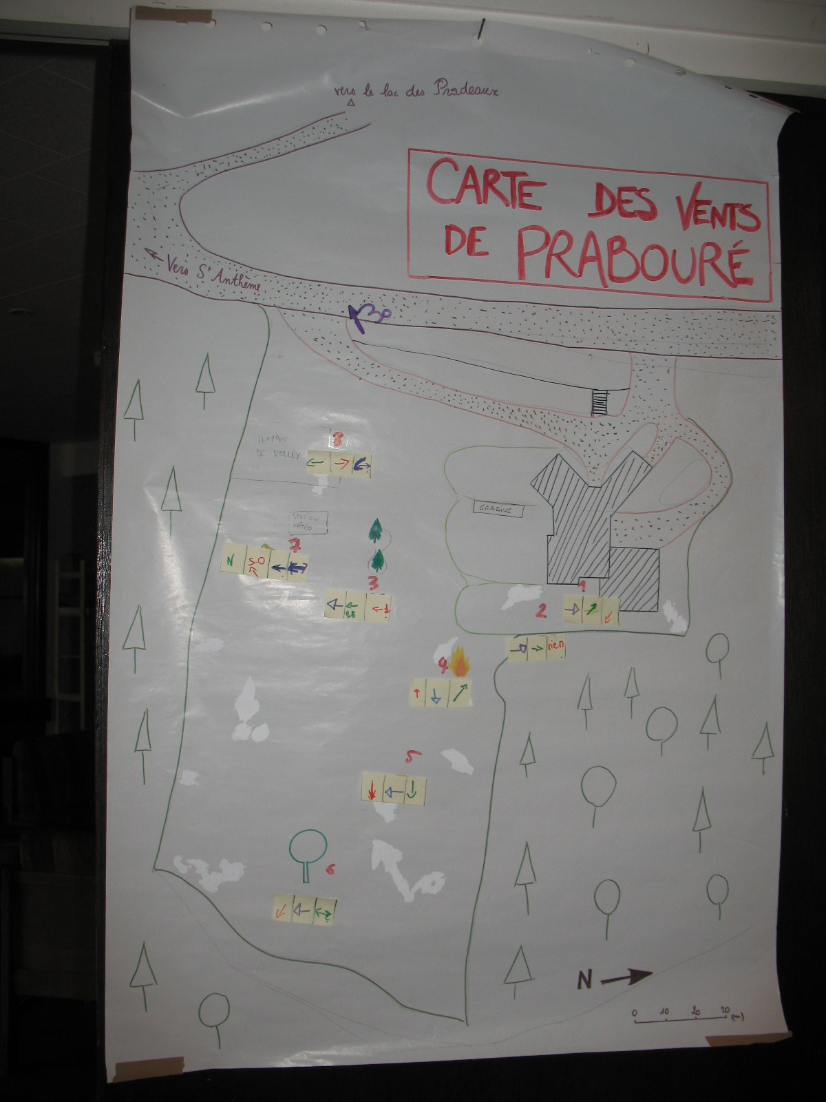 A l’issue de la séance, nous avons compris que le vent était malicieux... Et oui, il vient de directions vraiment différentes ! Mais oui, le relief a sûrement son influence... et puis, sommes-nous encore assez au point pour ne faire aucune erreur dans nos mesures ... ?