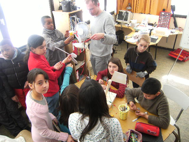 Après un long voyage de nuit, les élèves de CM2 se sont vite retrouvés dans le bain scientifique du Centre de Prabouré. Deux heures après leur arrivée commençaient leurs premières activités scientifiques, thème « éolien » pour certains, « solaire » pour d’autres.