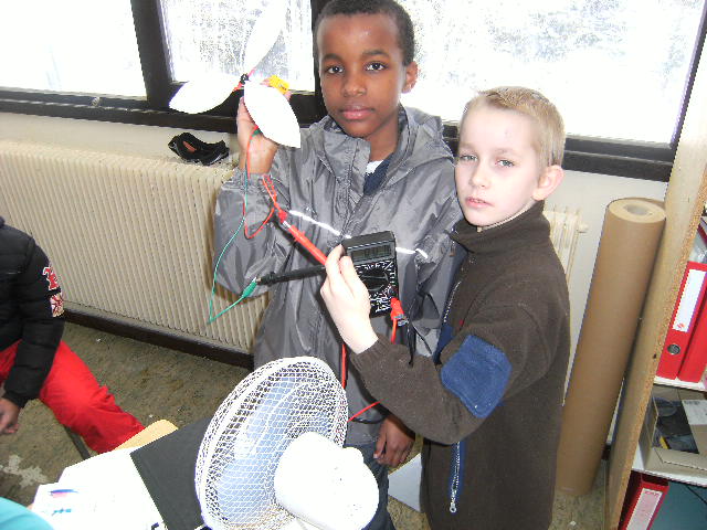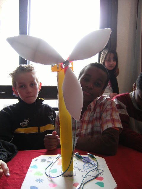 Mercredi, suite des expériences sur l’électricité et ensuite, place au projet ! Notre objectif a été de réaliser une éolienne. Nous nous sommes répartis en trois groupes pour avoir différentes éoliennes et pour pouvoir les comparer. La tâche n’est pas évidente mais nous avons tous les atouts en main ! Alors, avons-nous relevé le défi de produire de l’électricité grâce au vent ? Et tout était-il prêt pour la retransmission (présentation de nos travaux devant nos copains et devant les adultes du Centre) qui a eu lieu le samedi ? La réponse ci-dessous !