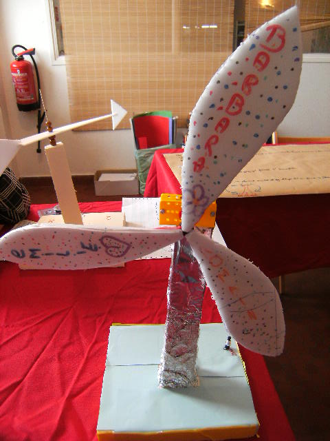 Chacun à notre manière, nous avons donc réalisé une éolienne. De la construction d’hélices à l’assemblage final en passant par le montage des engrenages, nous avions beaucoup d’éléments à prendre en compte. Quelques photos :