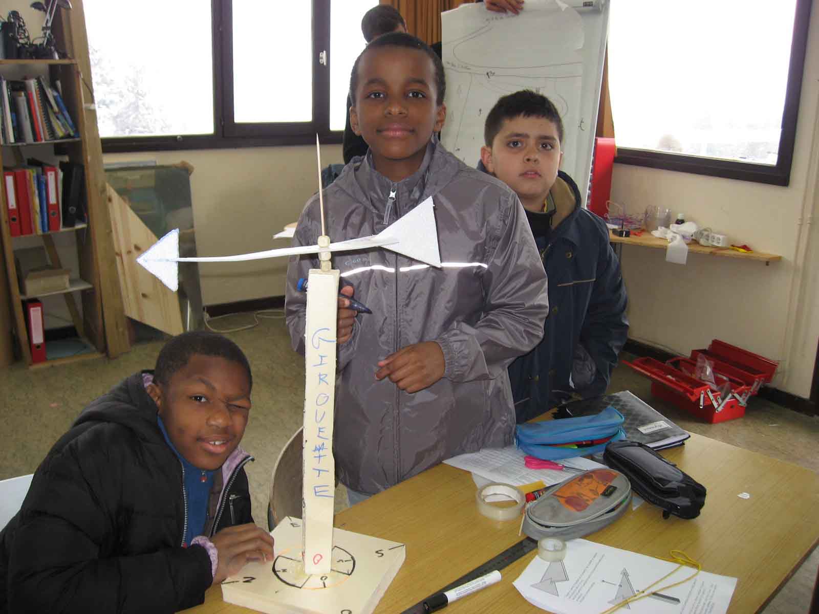Comprendre d’où vient le vent, apprendre à orienter un instrument, telle était le but de la matinée. Pour cela, nous avons construit nos propres girouettes !
