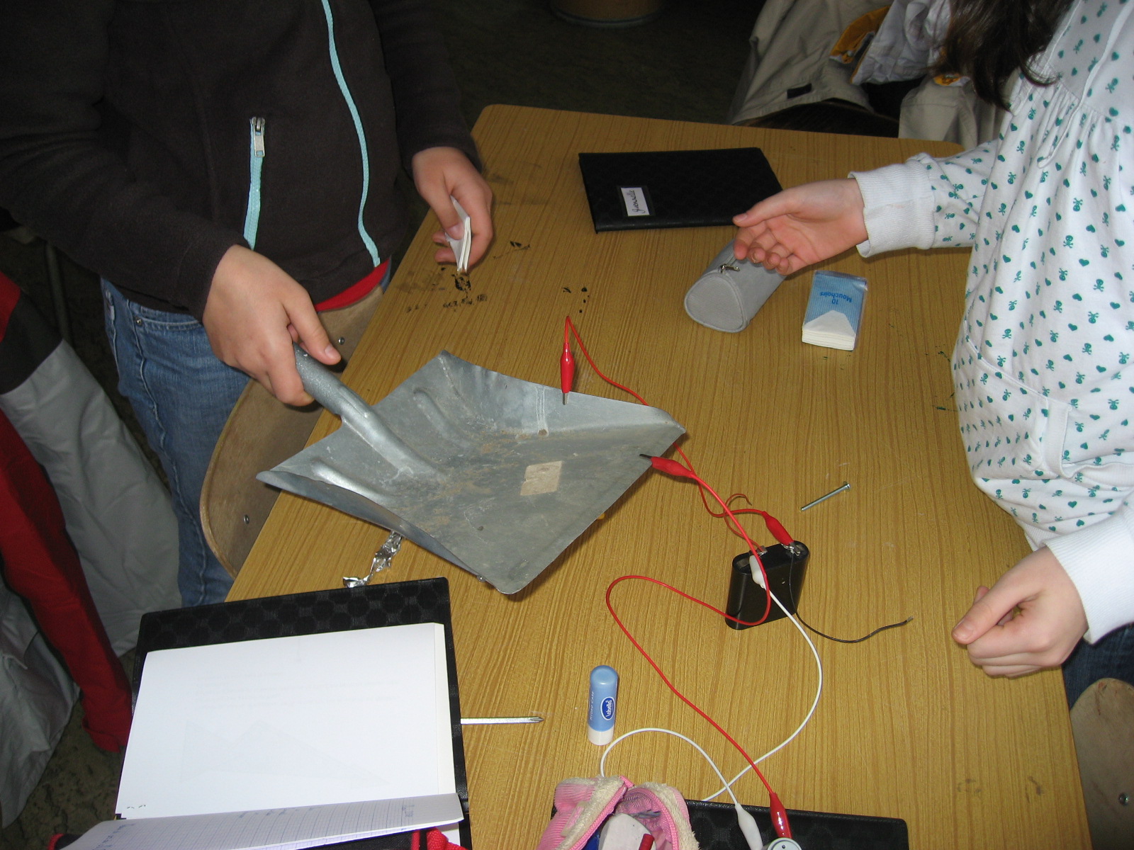 En deuxième partie d’après-midi, nous nous sommes penchés sur la notion d’électricité. Révisions pour certains, apprentissages pour d’autres, mais une bonne séance de pratique pour tous, entre les sources d’électricité, les conducteurs, les consommateurs et les mesures !