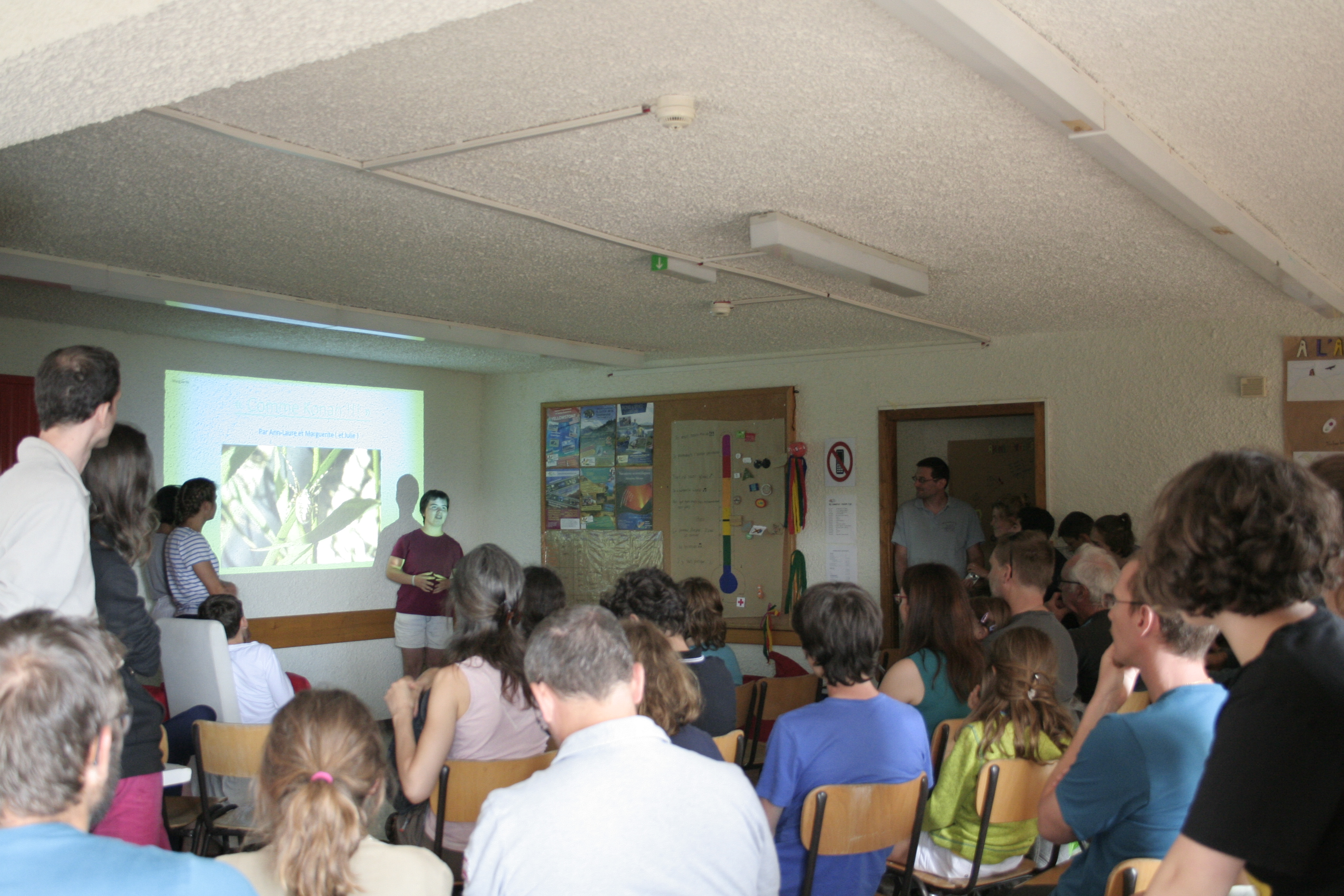 Les nouveaux participants sont bien arrivés, un goûter les attendait. Installation dans les chambres, découverte des salles d’activités scientifiques, jeux de société pour apprendre à se connaître. Pour le dîner, salade composée, hachis parmentier (à la polenta) et gâteau maison à la pêche. En guise de soirée, un jeu collectif de présentation à l’extérieur.