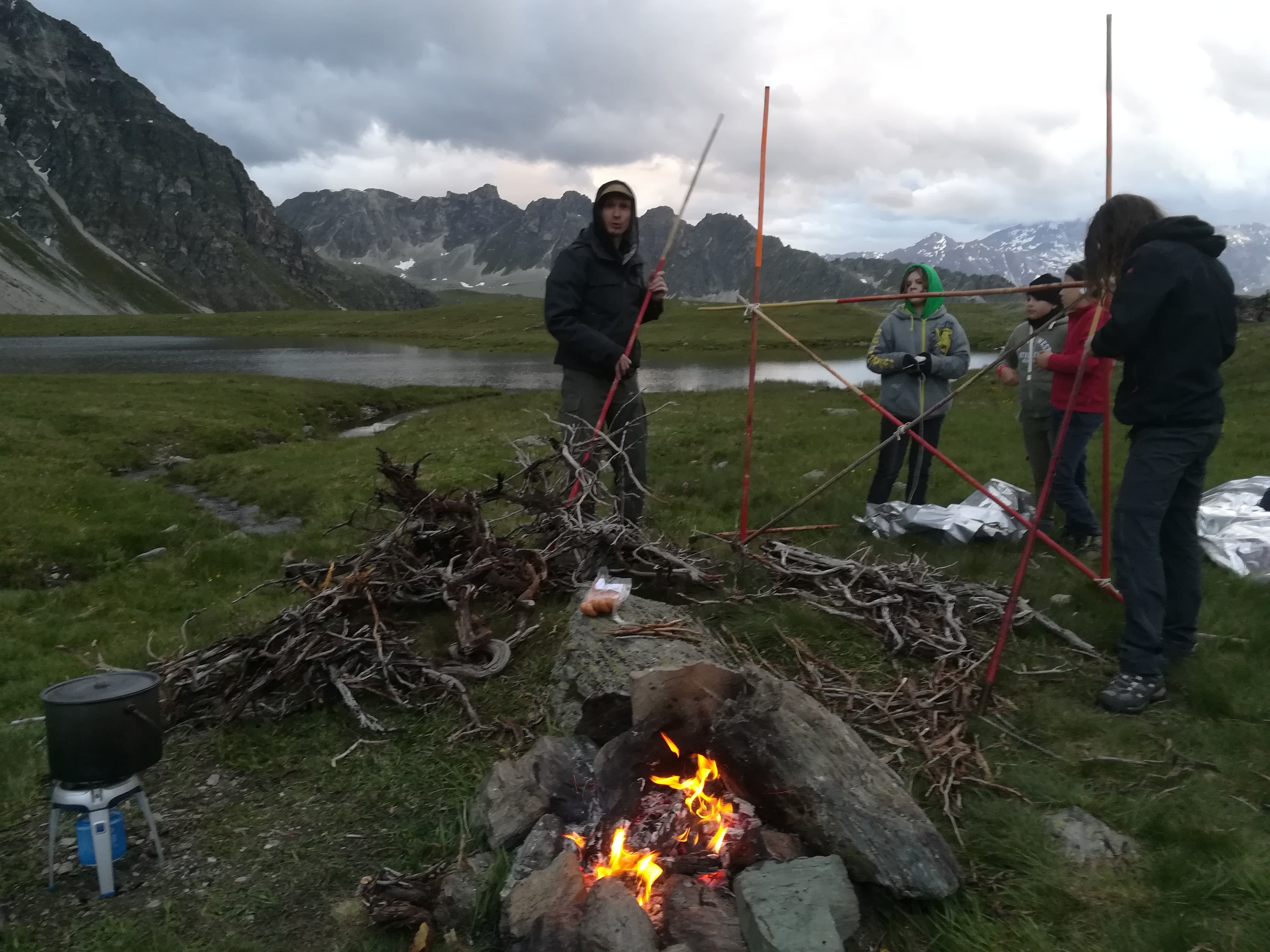 Nous nous mettons en quête de bois pour faire un feu qui nous réchauffe et nous permet de griller des saucisses, de faire de délicieuses bananes au chocolat dans les braises. Nous avons un peu triché pour les pommes de terre cuites au préalable par Marie, l’autre groupe « biodiversité » nous ayant laissé sur place un réchaud à gaz. Nous passons une soirée enjouée autour du foyer et nous endormons emmitouflés dans nos duvets et protégés par des couvertures de survie, sous un ciel...presque étoilé....