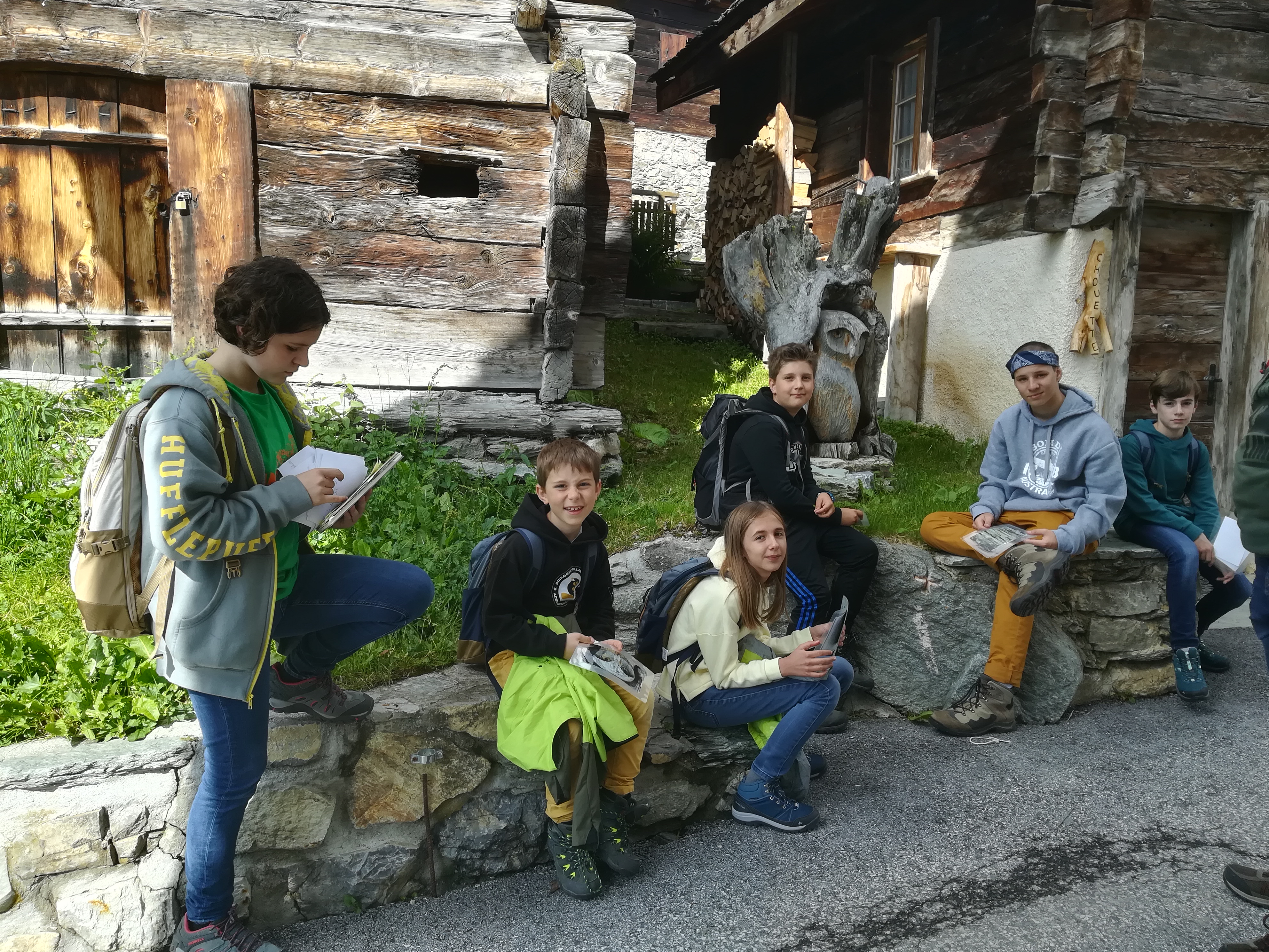 Cet après-midi, nous avons enrichi notre culture architecturale des spécificités locales de Chandolin, sous forme d’un rallye photo. Nous avons ainsi découvert les raccards, ces greniers en bois de mélèze soutenus par des poteaux de bois et des pièces circulaires de pierre qui empêchaient les rongeurs d’atteindre les stocks de seigle et de froment.
