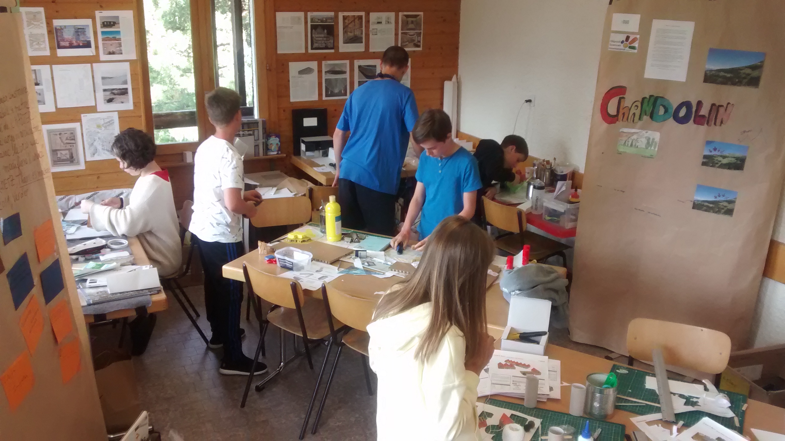 Ce matin, nous préparons avec entrain notre stand pour la retransmission de cet après-midi : posters, maquettes, carnets de dessins...Moment de partage et de discussions autour des questions complexes de notre planète terre avec l’ensemble des camps scientifiques et des parents et proches qui pourront nous rejoindre à Chandolin.