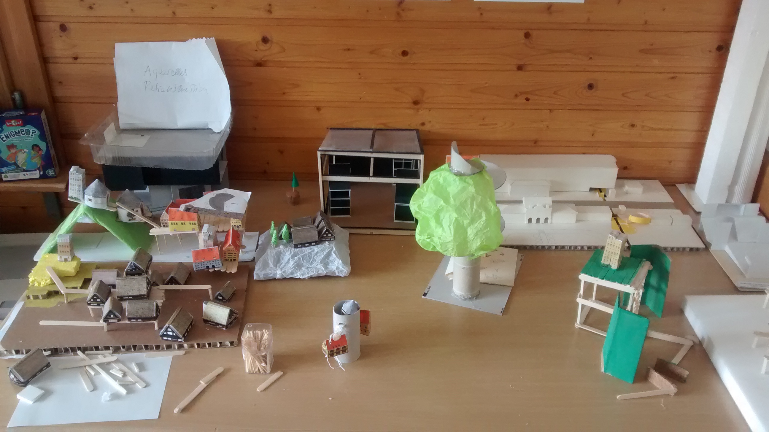 Après le petit-déjeuner échelonné entre 7h30 et 8h45, nous avons démarré la journée sous forme d’un « réveil tonique » avec l’animatrice Catherine : on était en cercle, on tapait dans les mains de son voisin et on formait ainsi une chenille humaine. Puis pendant l’activité scientifique du matin, nous avons appris à utiliser les outils : cutter, pistolet à colle chaude etc. Forts de cette expérience, nous avons dessiné une maison qui prend en compte la question du terrain sur lequel reposerait notre construction, avec une question : comment impacter le moins possible le sol. Nous avons en effet appris avec stupéfaction que 26 m2 de terres fertiles disparaissent toutes les secondes pour les constructions humaines (en France)... L’après-midi, nous avons créé une maquette de notre maison du futur, résiliente et respectueuse du sol...