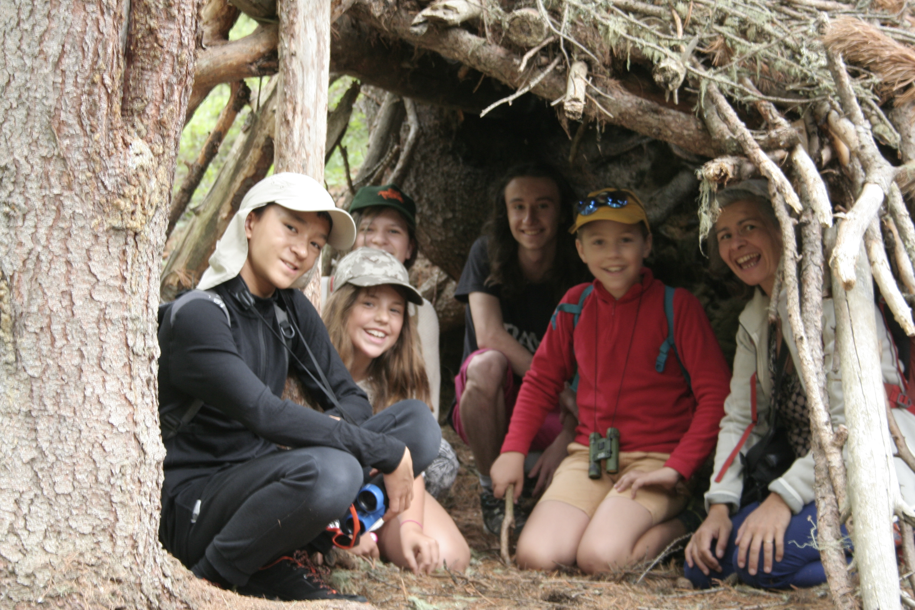 Malgré le froid matinal (il a neigé cette nuit !), nous sortons, chaudement vêtus, pour construire les cabanes des habitats nomades du passé, telles que la hutte-écran de Patagonie et d’Australie : le travail d’équipe a bien fonctionné...