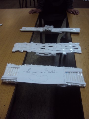 Après nous avons réfléchi comment faire la structure, puis nous avons commencé la construction de notre pont.