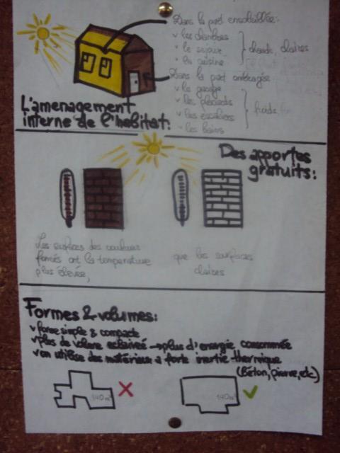 L’après-midi, on s’est de nouveau séparés en plusieurs groupes pour travailler sur différentes principes de architecture bioclimatique. Chaque équipe a expliqué une principe :