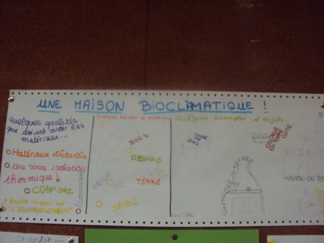 L’après midi nous avons eu la retransmission ou nous avons explique les principes de l’architecture bioclimatique, les résultats que nous avons obtenue des températures des nos trois prototypes et comment nous avons construis la cabane écologique.