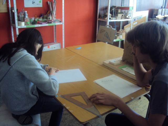 Aujourd’hui nous avons fait deux équipes : l’une refaisait la maquette car elle ne tenait pas et nous en avions besoin pour voir si elle résistait bien à la chaleur. L’autre équipe a commencé la cabane.