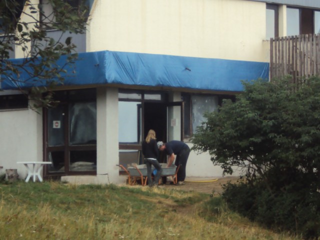 Pendant que j’écris, nous sommes encore en train de travailler à la restauration des murs de la cabane bien plus compliquée que l’on pensait.
