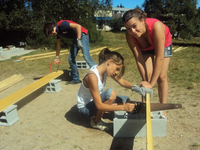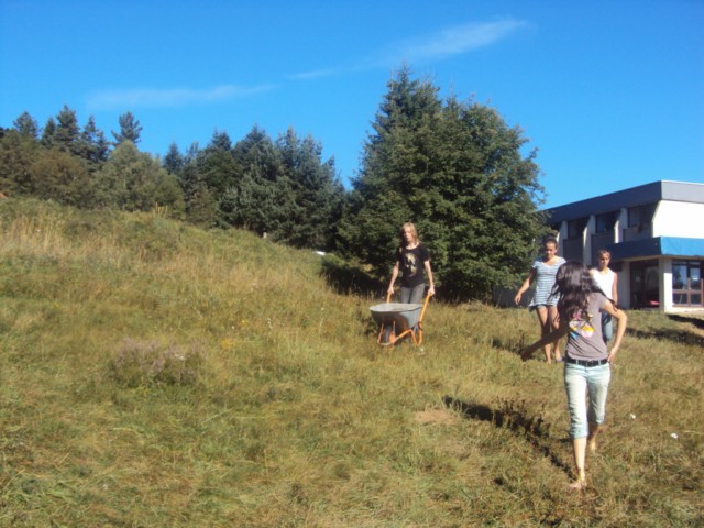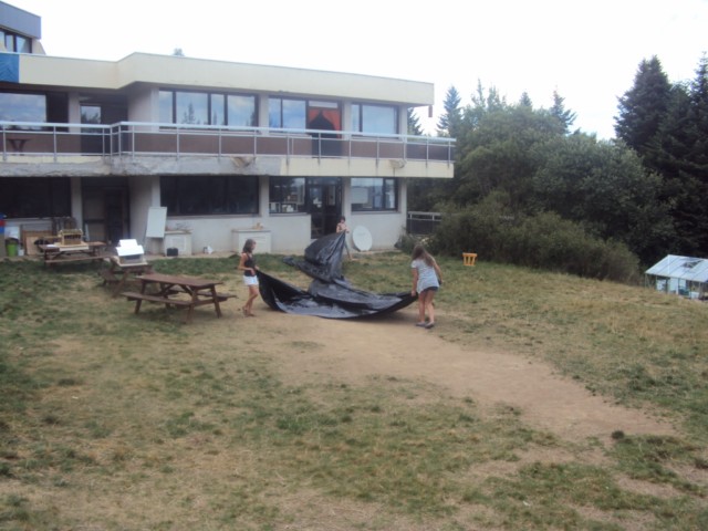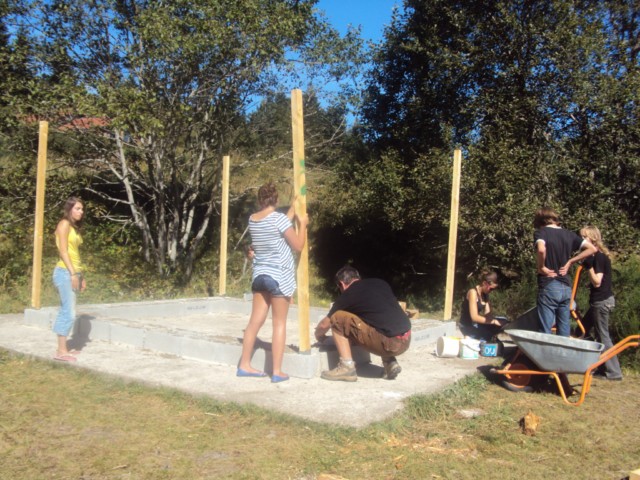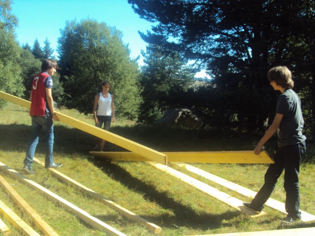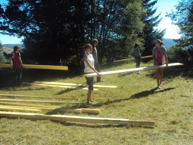 Aujourd’hui est arrivé à notre centre la dernière équipe de jeunes architectes de cette été : Keri, Laura, Augustin, Elena, Guillaume, Jordan, Romane et Clara. Ils vont finir notre projet de recherche : trouver le meilleure prototype de cabane écologique.