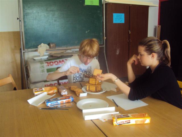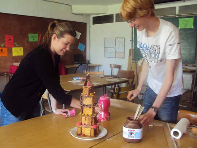 Aujourd’hui nous avons réalisé le défi de construire la plus grande construction en biscuit et Nutella avec Sissi une Finlandaise qui parle bien français, et moi, Arthur (votre scribe du jour) qui vient de Bretagne.