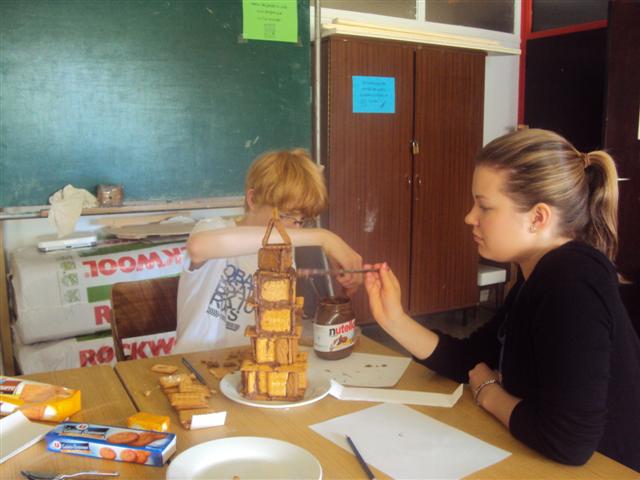 La première mission de nos jeunes architectes : « Construire une tour en biscuits »