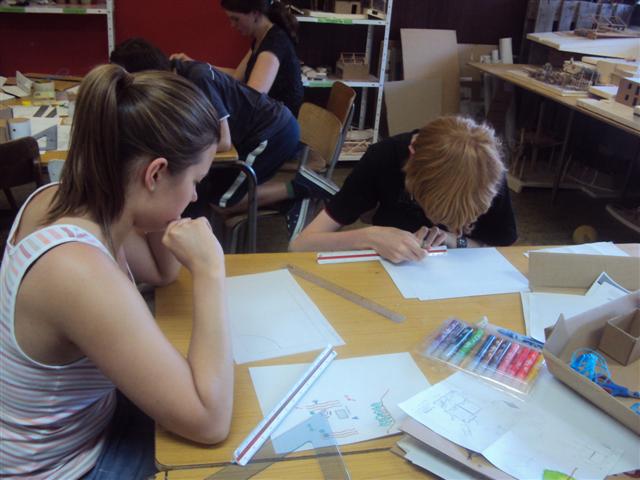 Aujourd’hui un architecte est venu pour nous donnes des idées pour développer nos projets. Pendant le matin nous avons fini les plans pour l’avant projet de la cabane écologique (plan, façades). Nous avons commencé à réfléchir sur la structure et nous avons fait une coupe pour mieux comprendre quels matériaux on va utiliser.