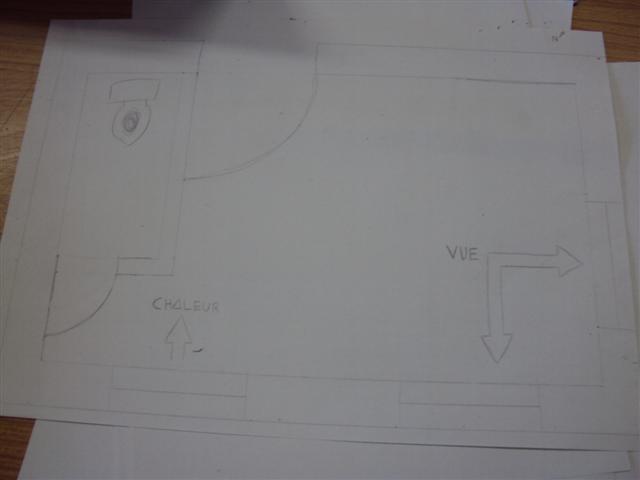 Pendant l’après midi on a commencé à faire le plan de la cabane à l’échelle