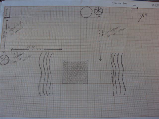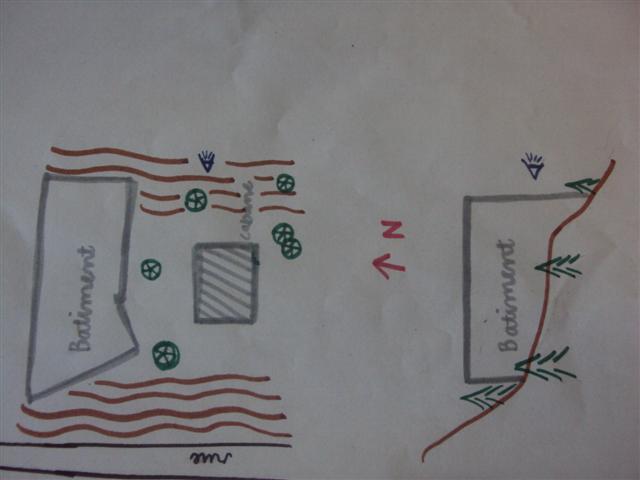 Après nous sommes partis sur le terrain, nous l’avons délimité et nous en avons fait le relevé. On a mesuré la distance du terrain en relation avec le bâtiment, et la distance des arbres qui sont proches du terrain.
