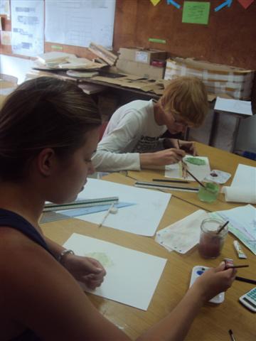 Ce matin nous avons fini notre dessin en aquarelle, nous avons dessiné tout les détails et les ombres avec un stylo noir.