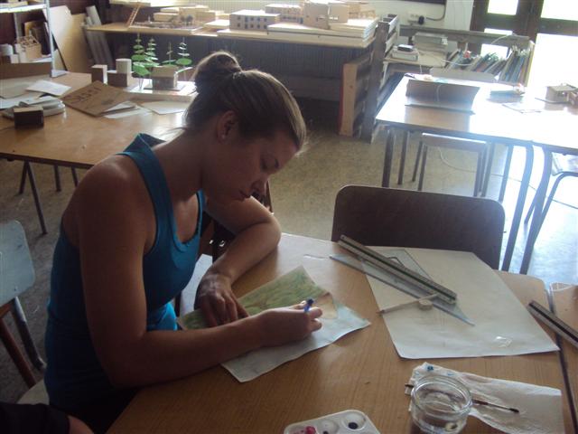 Ensuite nous sommes retournés dans la salle pour améliorer nos croquis avec des feutres de couleur. Demain on va réfléchir à quel terrain on va choisir.