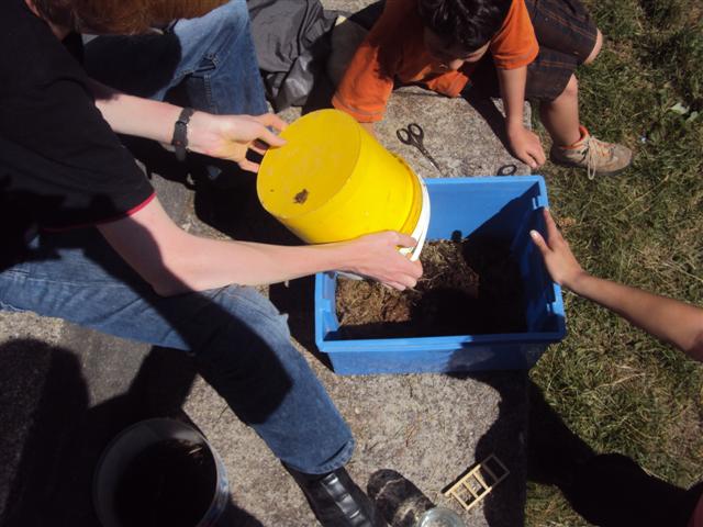 On est allés dans la forêt pour chercher l’argile, on a pris un seau d’argile et sable, ensuite on a pris de la paille et des racines.