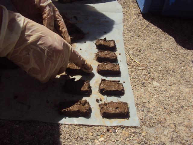 On a commencé à faire des moules pour faire des petites briques en terre crue (adobes) pour faire la maquette finale de notre projet.