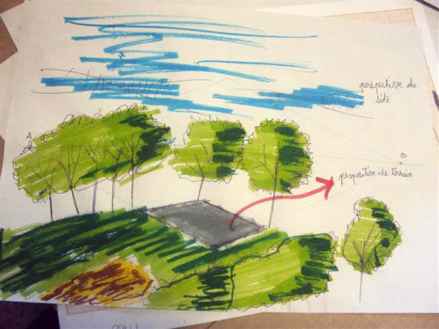 En suite on a parti dans le terrain pour le mesurer, faire quelques croquis, perspectives et nous avons fait quelques photos du terrain.