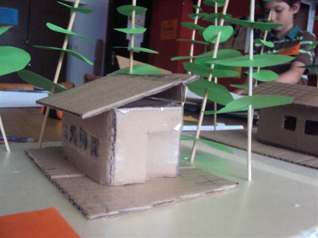 Ce matin nous avons fait un plan de la cabane que l’on a imaginer. Ensuite nous avons fait une maquette du plan de la cabane avec la proposition de fenêtres en pensant que la façade qui doit avoir plus de fenêtres est la sud et on ne doit pas faire fenêtres dans la façade nord. Et puis pour finir nous avons regarder un film pour savoir comment construire des maison en paille.