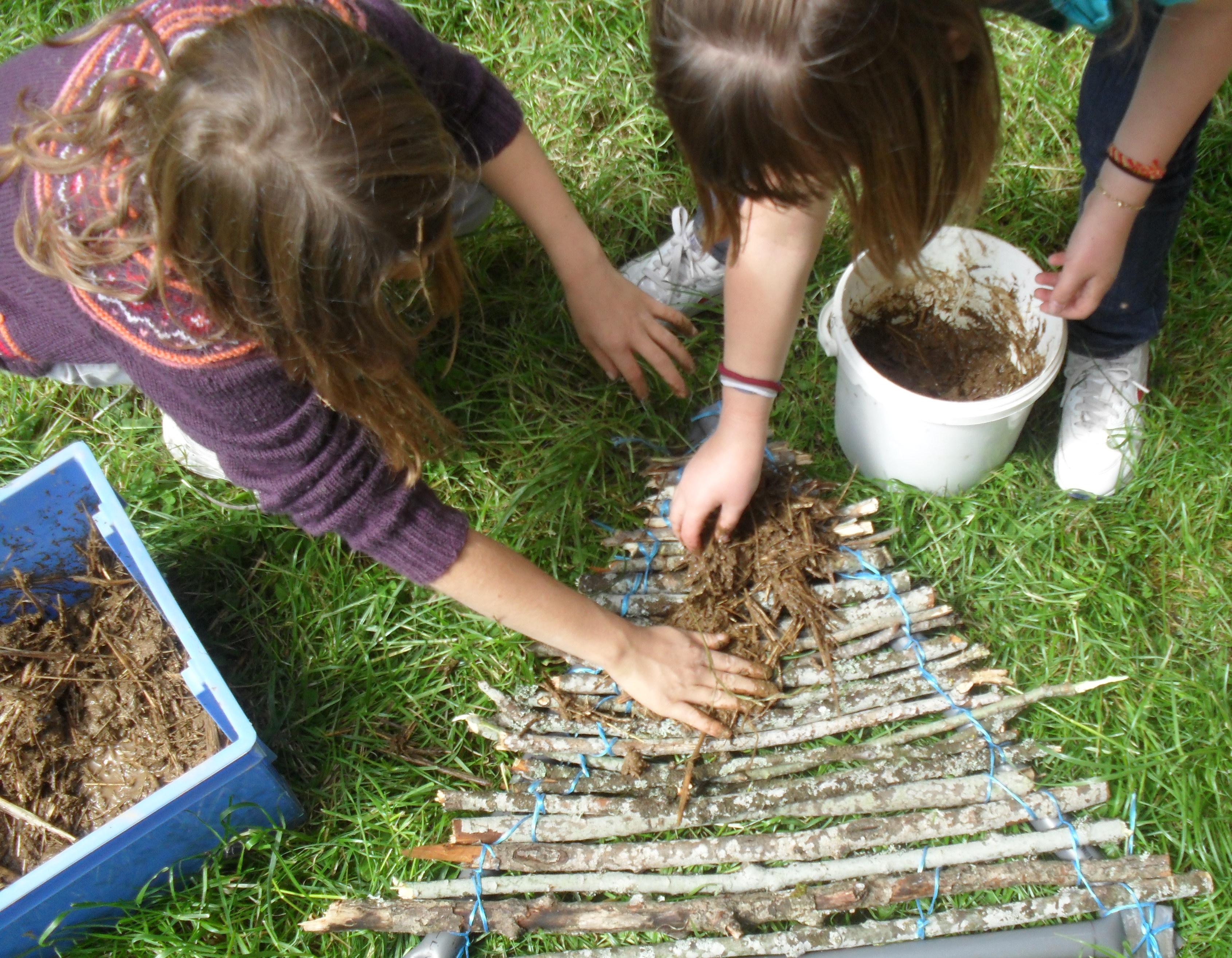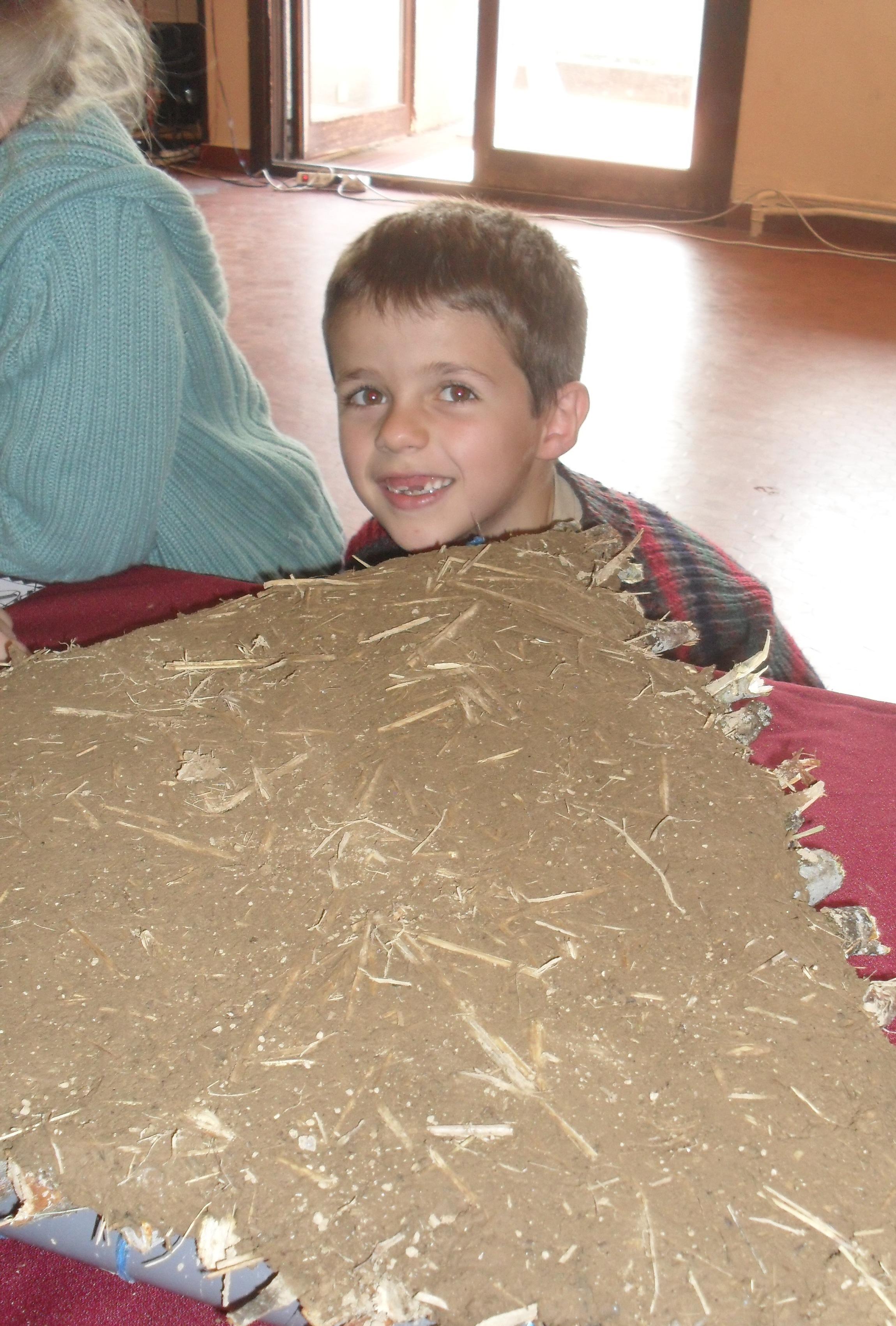 Aujourd’hui nous commençons la journée par la fabrication du prototype de terre paille, nous avons donc fixé les branches sur le cadre que l’on a voulu triangulaire. La fixation se fait grâce à de la ficelle, puis nous avons préparé le mélange terre paille eau selon les bonne proportion et nous l’avons appliqué sur les branches. Nous avons séché le tous grâce au décapeur thermique.