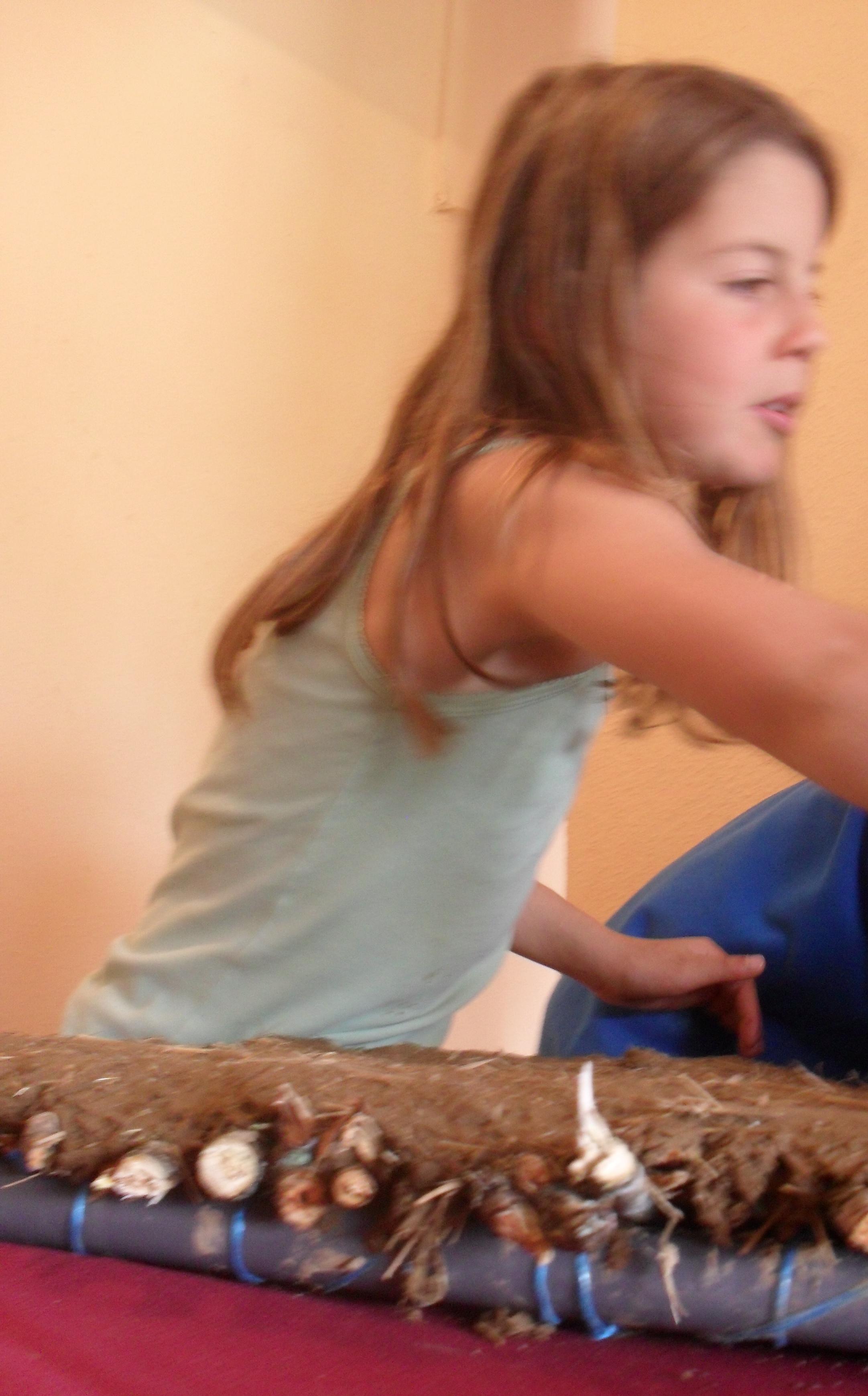 Ce matin nous avons commencé un prototype de revêtement de la surface du dôme. Nous avons donc découpé, chauffé, plié, percé, et assemblé les tuyaux PVC. Ensuite nous avons fait un sagamor, et nous avons fini le cadre du prototype. Nous aussi fait le bilan écologique du dôme et pris quelques branches aux arbres environnants pour le tressage de branches que nous allons faire sur le prototype.