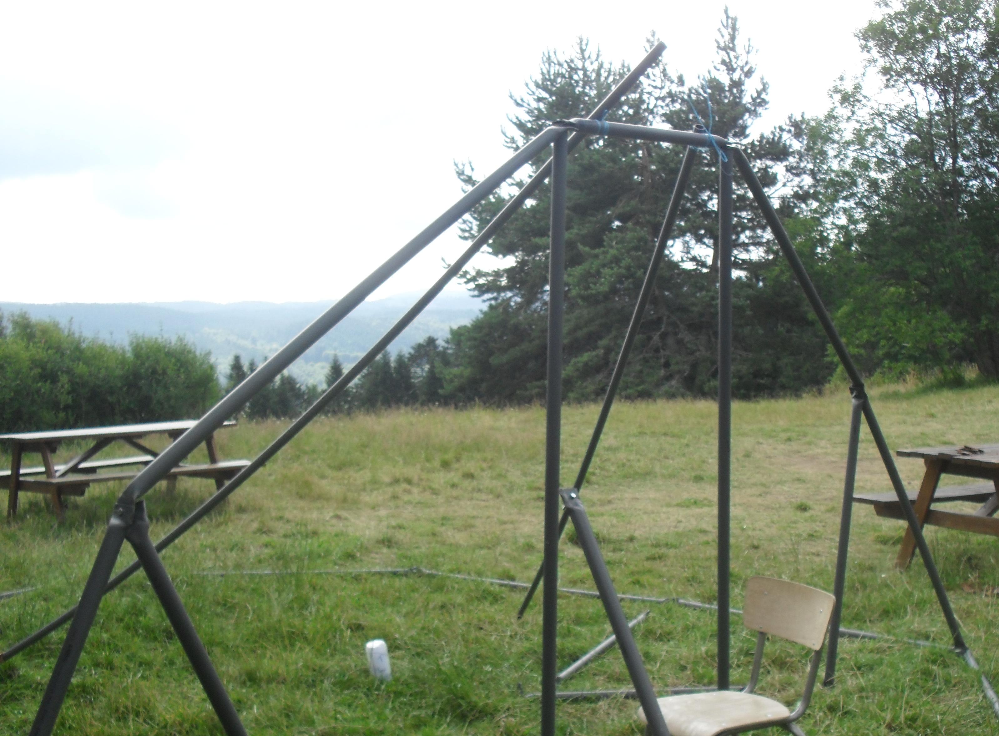 Aujourd’hui nous avons commencé la vraie construction du dôme tel que nous l’avons imaginé avec les séjours précédents. Nous avons fait tout le contour extérieur, la base qui sera sur le sol. En Aes nous avons fait un atelier scoubidou en écoutant de la musique. Pour certaines personnes il fallait apprendre à les faire, d’autres, visiblement plus expérimentées, savaient déjà en faire. Certains ont fait des bonhommes ou des hélicoptères. En veillée nous avons fait une enquête policière pour démasquer le coupable d’un meurtre.