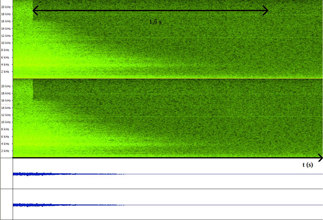Il est très facile d’observer les fréquences qui s’atténuent plus lentement que d’autres (basses fréquences et 4 kHz). C’est de ces fréquences qu’il faudra s’occuper en priorité en trouvant les matériaux à disposition.