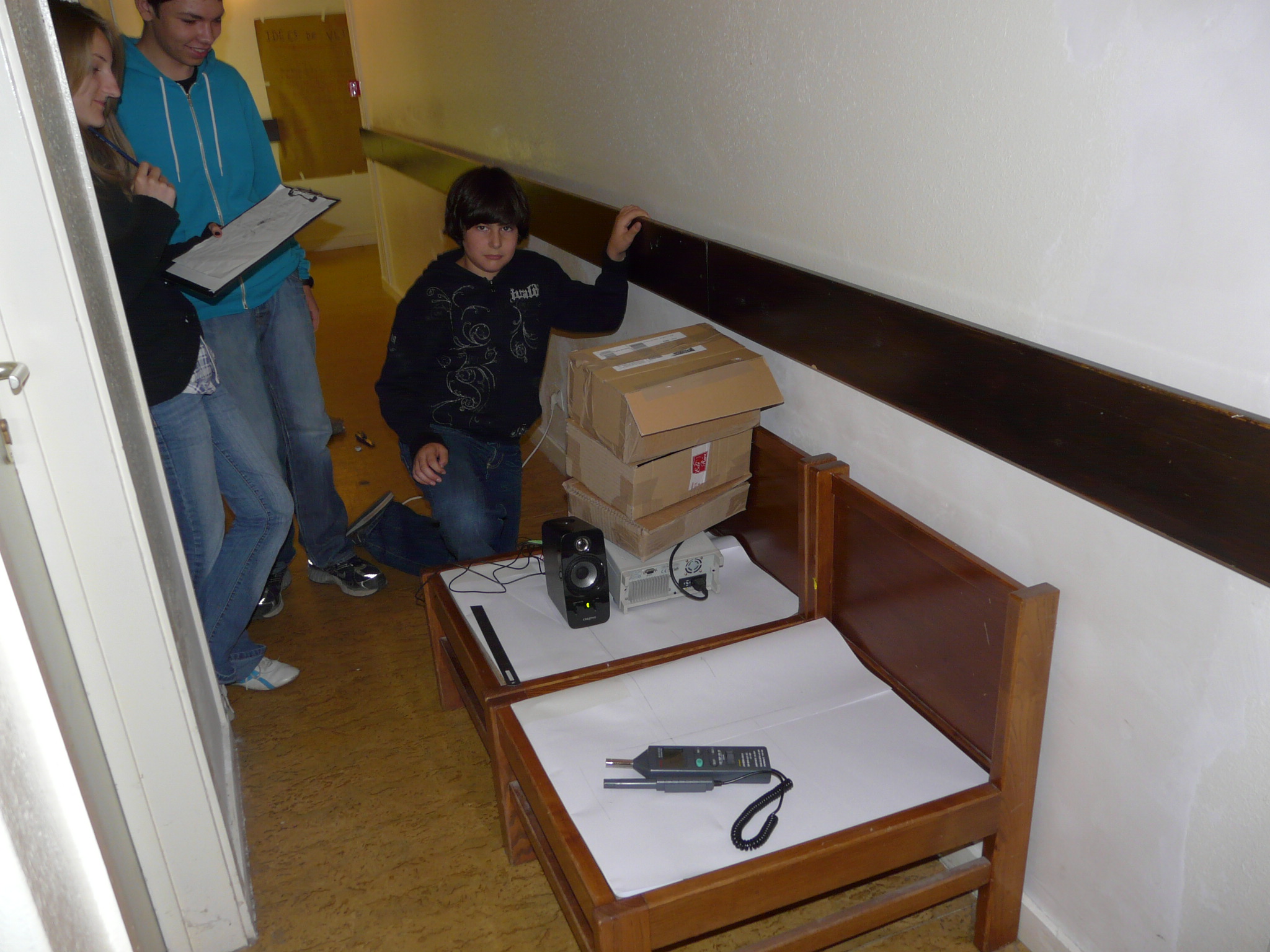 - Landry et Matieux réalise la maquette pendant que Lise dessine les plans à l’échelle de la salle anéchoïque.