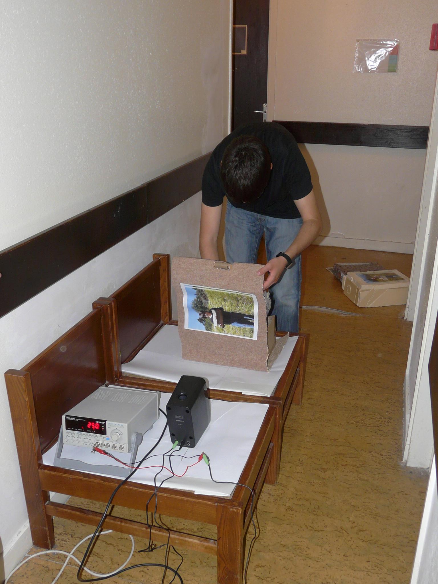 Pour répondre à un besoins du camps perception sensoriel des plantes l’équipe écologis réalise une nouvelle boite insonorisée plus grande que les précédente. L’isolation est basé sur des tasseaux de bois et du liège. L’objectif est de profiter de cette boite pour tester en dimension réduite ce qui sera mis en place dans la salle anéchoïque.