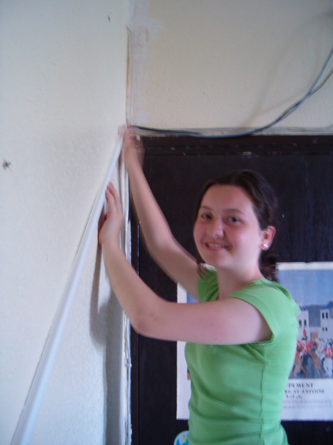 Madeline , Olivia et Michéle, ont abordé la phase contact en s’essayant à la découpe du carton, de la mousse et de la moquette pour tester l’absorption du son par ces matériaux.