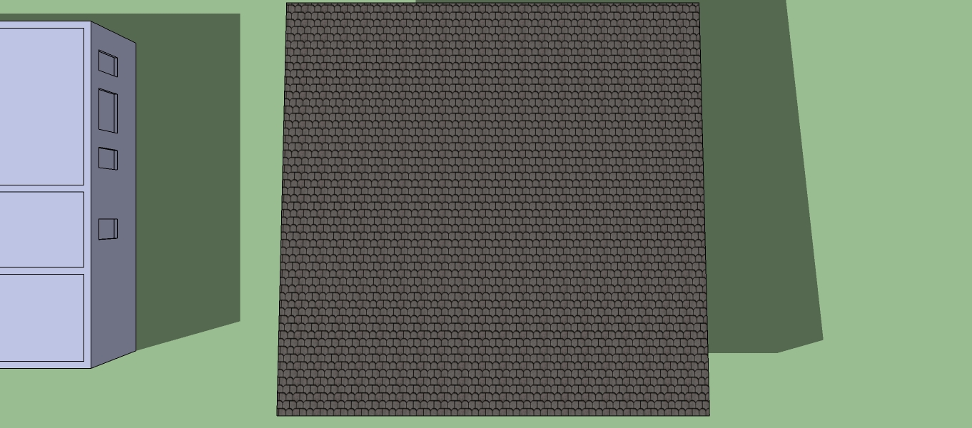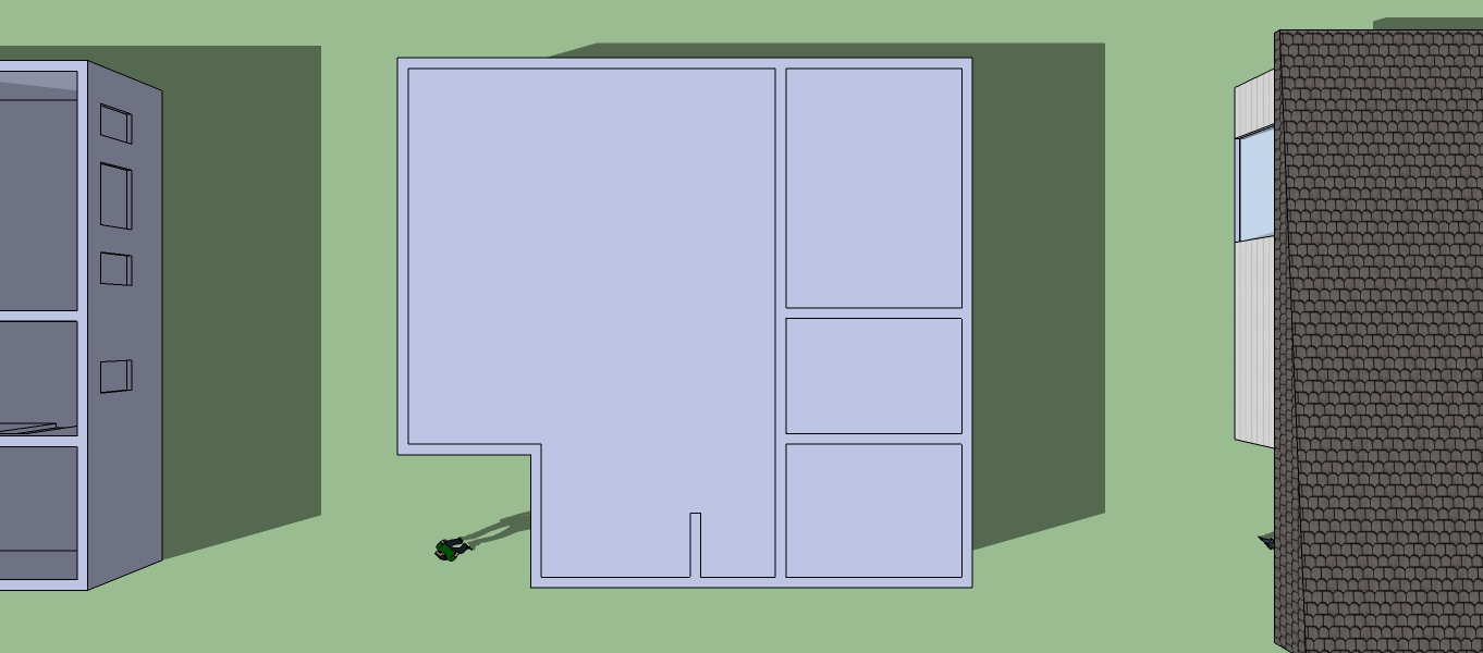 http://www.prog-ecologis.com/IMG/jp...Voilà ca c’est la base pour obtenir avec 4 outils (crayon, décalage, extrusion, et texturage) le volume de base de la maison avec toiture végétalisée !